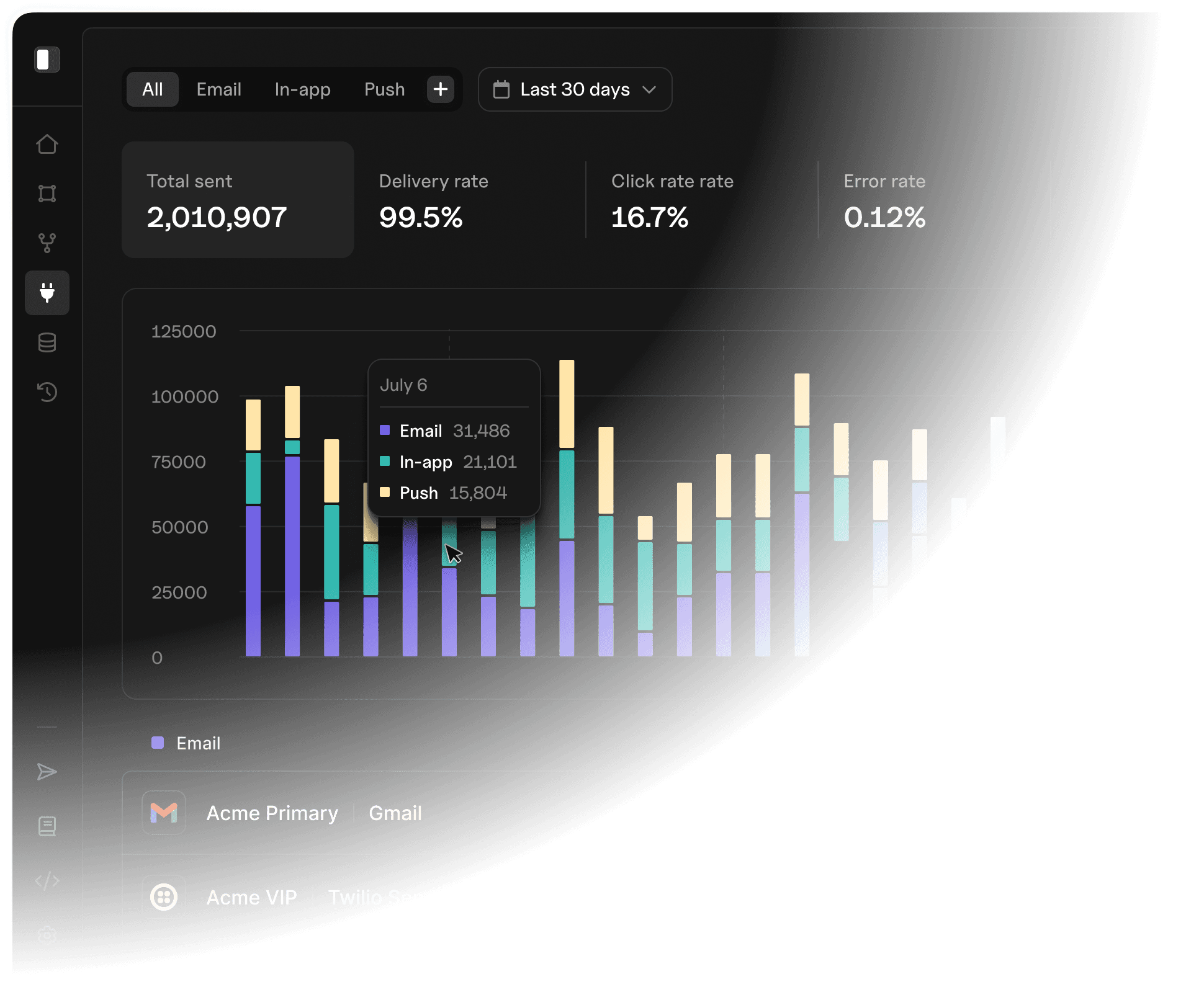 Measure engagement across channels, monitor delivery health, and debug issues all from one place.
