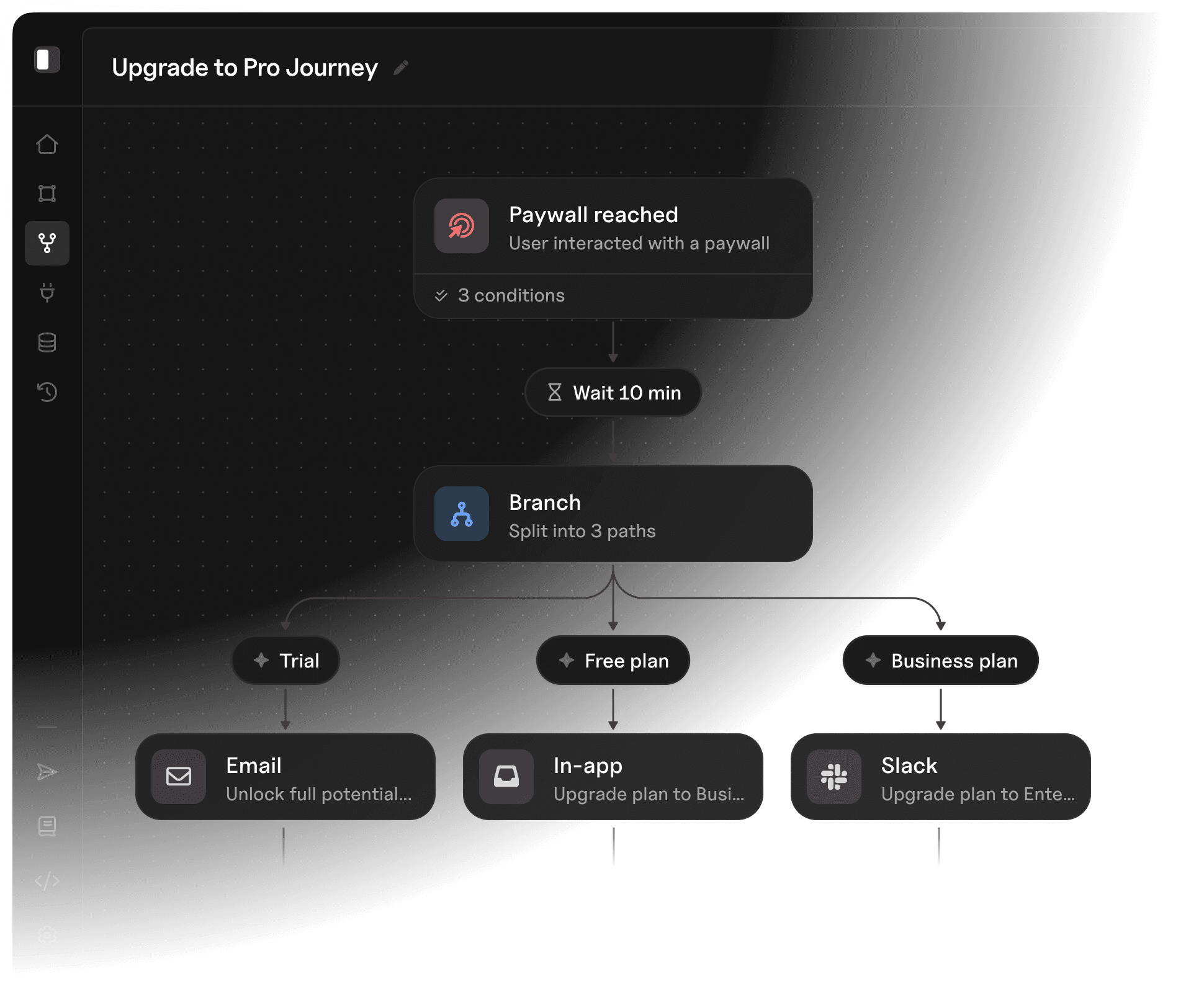 Orchestrate user journeys end to end: trigger, personalize, and deliver across channels from one platform.