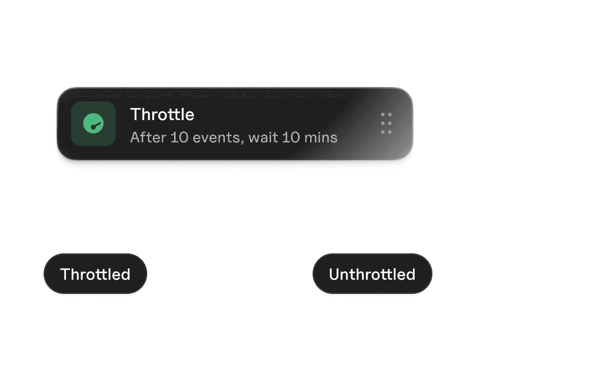 Automate message workflows with rules and timing. Batch events into digests, then throttle sends to prevent notification floods.