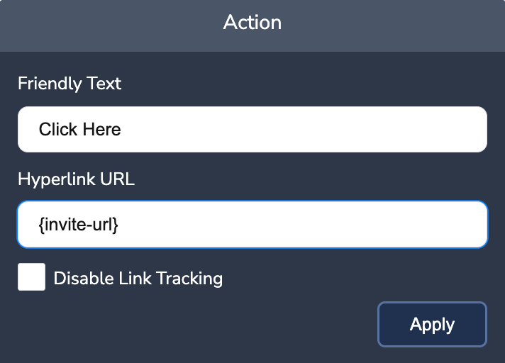 Anawith{profile.name}to dynamically change the name for each individual recipient. - Click on the action block, and then the pencil icon to open the action block settings. Replace the current URL with