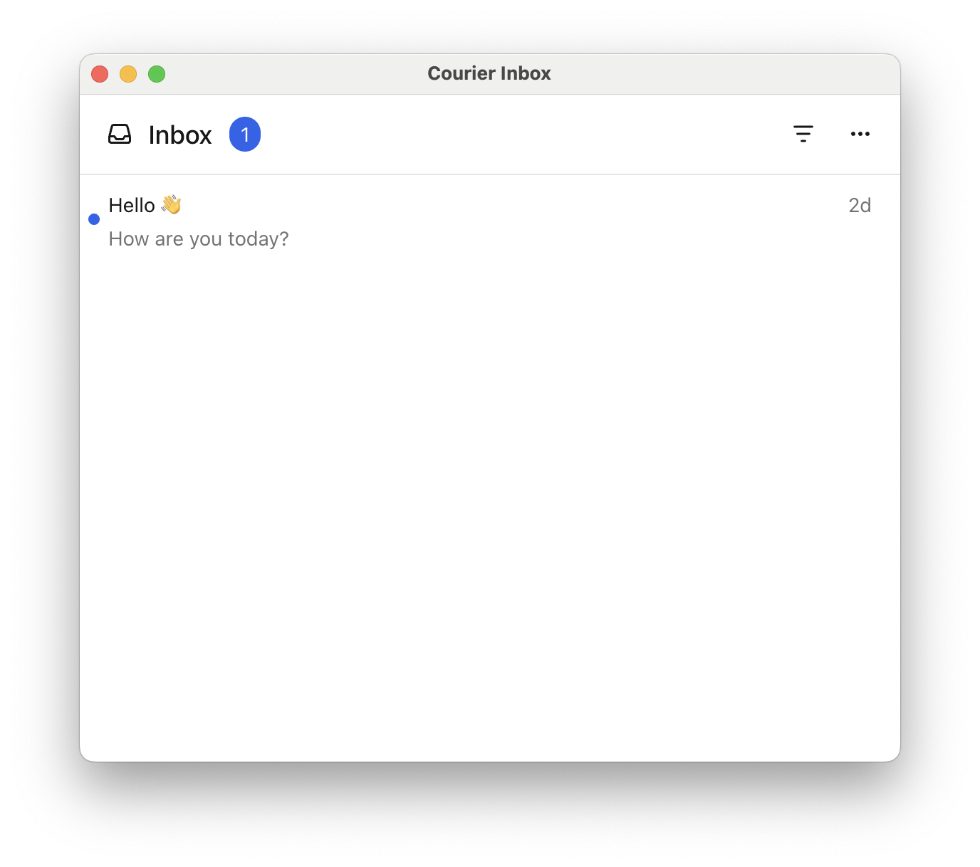 To implement Inbox in React, you’ll need a backend to retrieve messages. This functionality is managed through theCourierInbox component and requires an active Courier account.