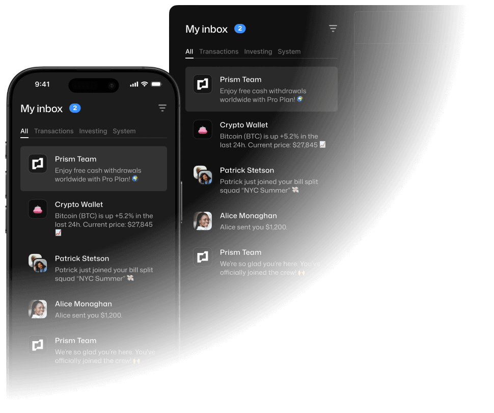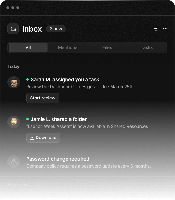 Embed a notification center into your product with custom components that fit with your design. Real-time sync across devices for a fully integrated messaging system.