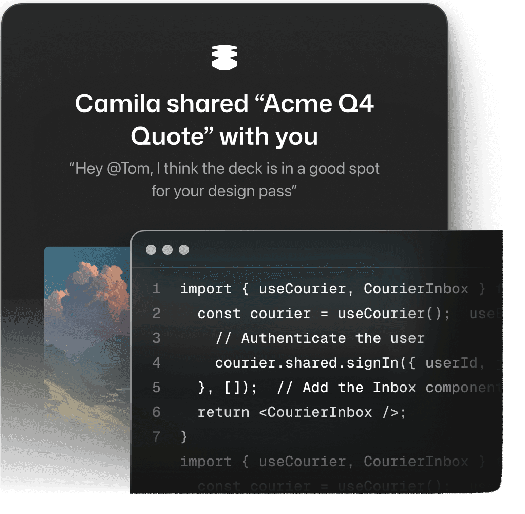 Courier Inbox for real-time notification centers in web and mobile apps. Pre-built components for React, iOS, Android, and Flutter.