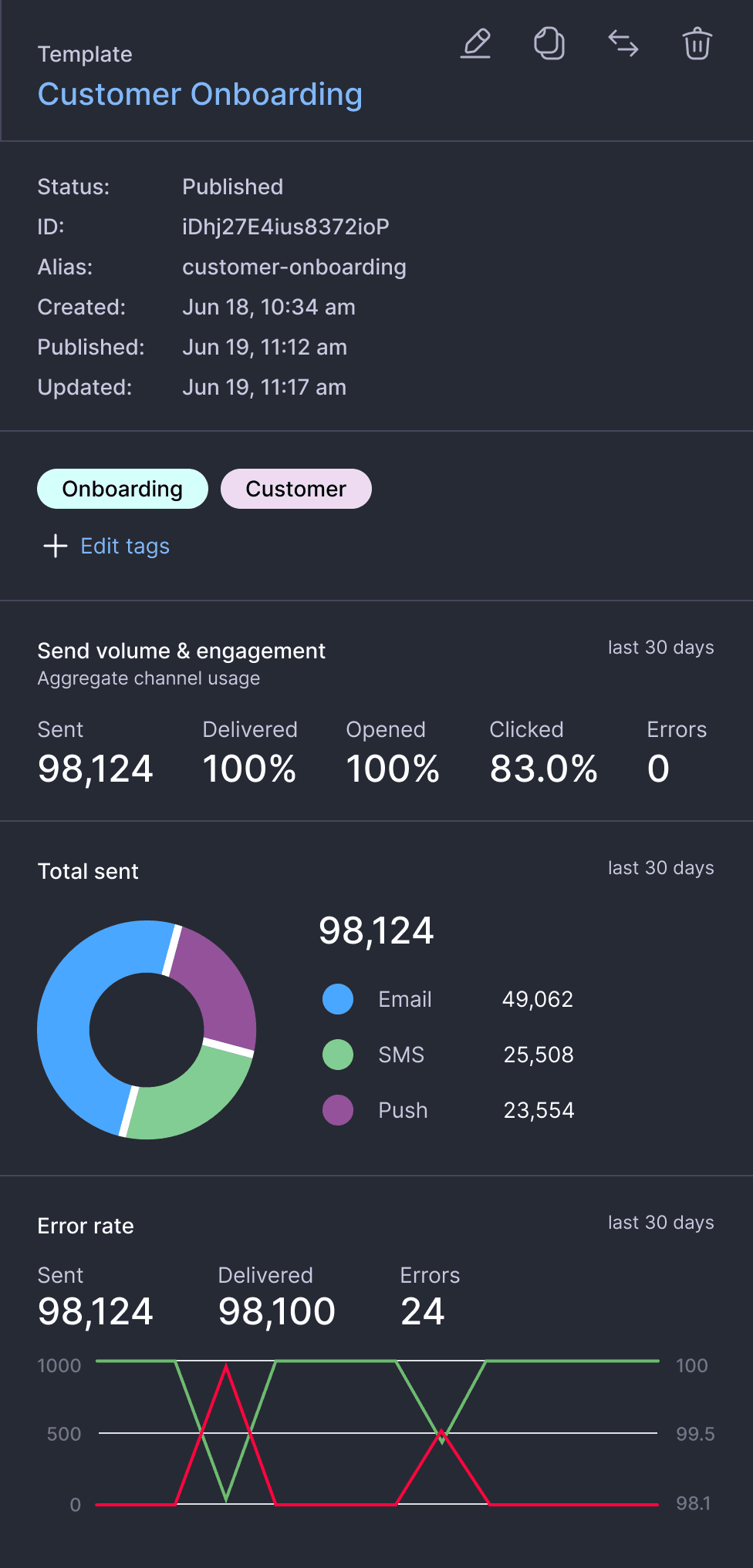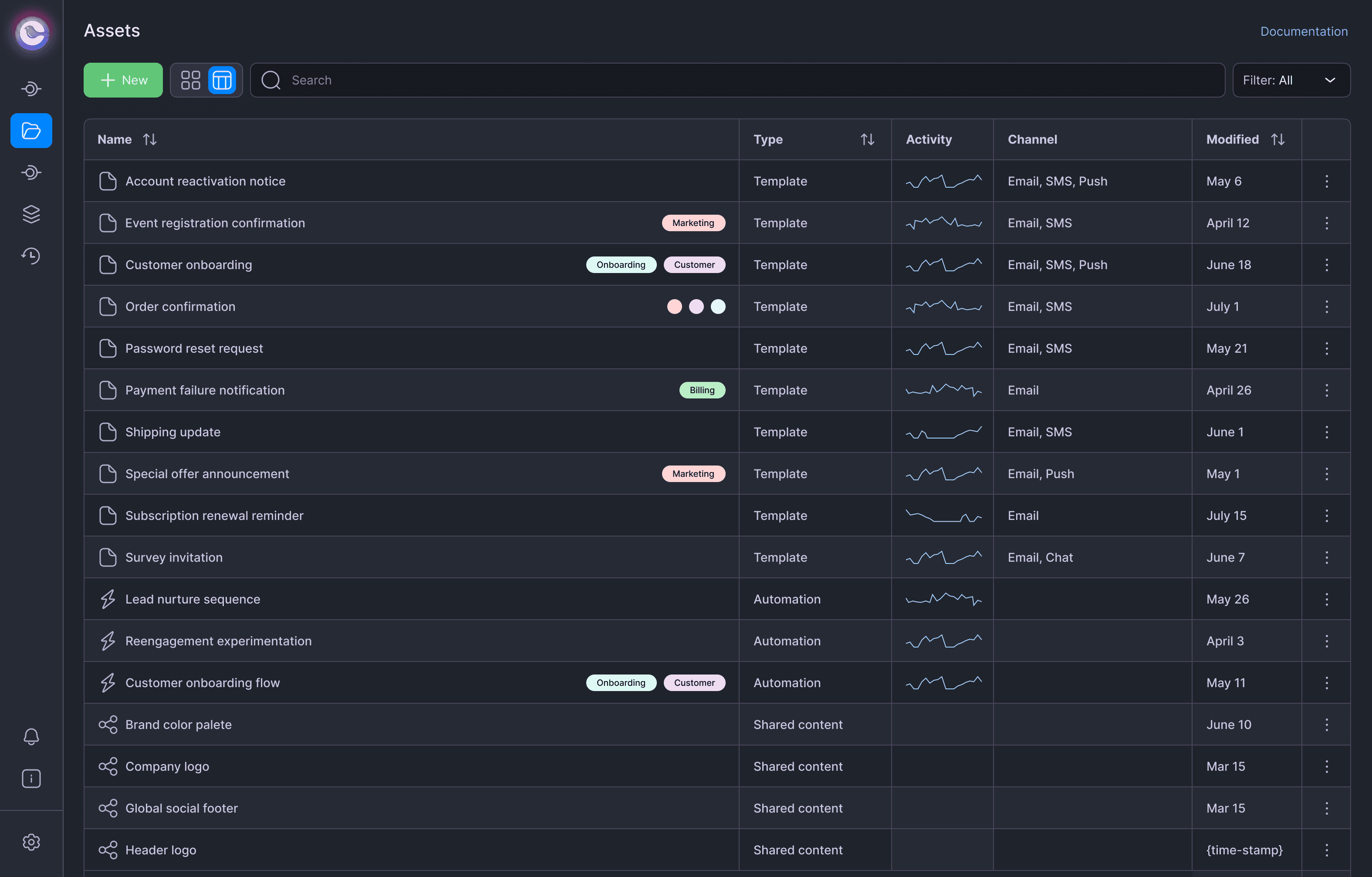 Keep your templates, automations, and shared content organized on a single page. Sort, tag, and arrange your assets the way you want, with ease.