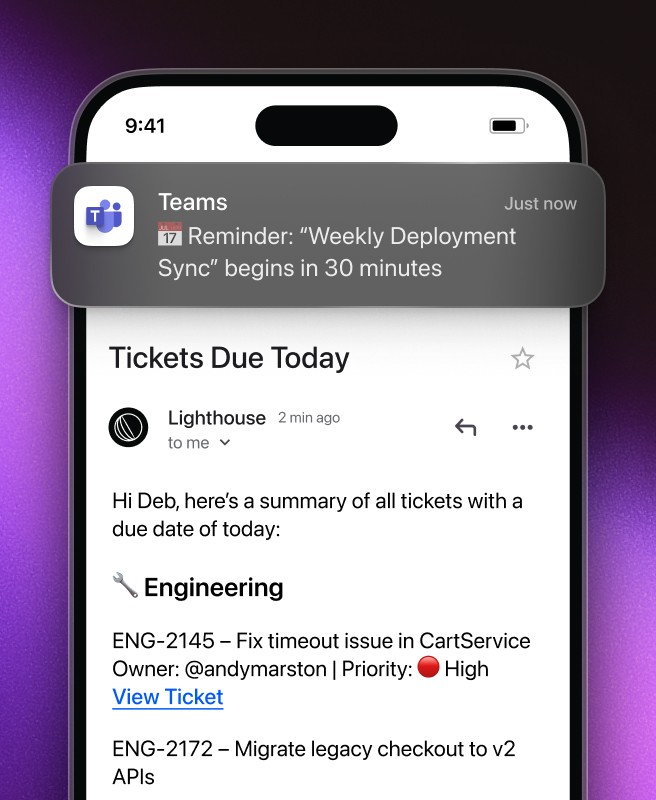 Cut alert overload with digests and delivery based on each user’s channel preferences.