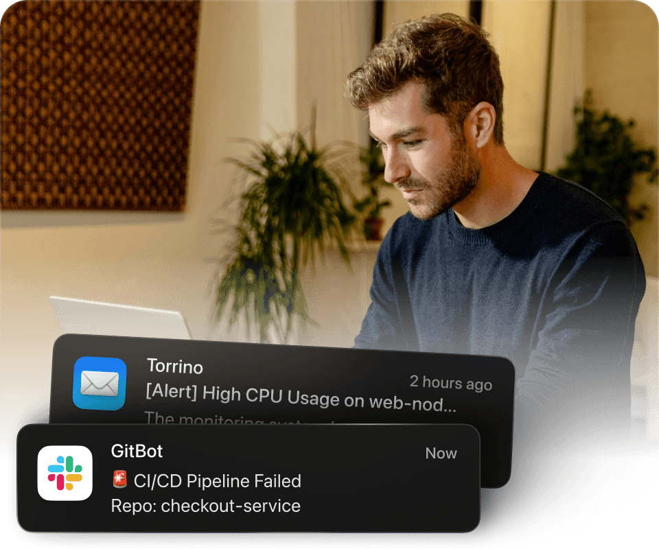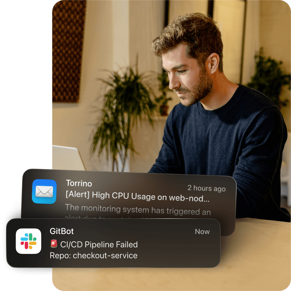 Security vulnerabilities, failed builds, and incident declarations that need instant visibility.