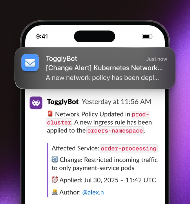 Enable teams to ship together with notifications that connect feature flags, deployments, and rollbacks across every tool and team.