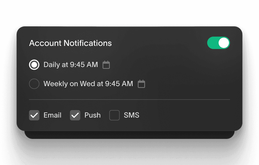 Give users control over what they hear and how they hear it. Courier’s preference center manages channels, topics, and frequency to reduce fatigue.