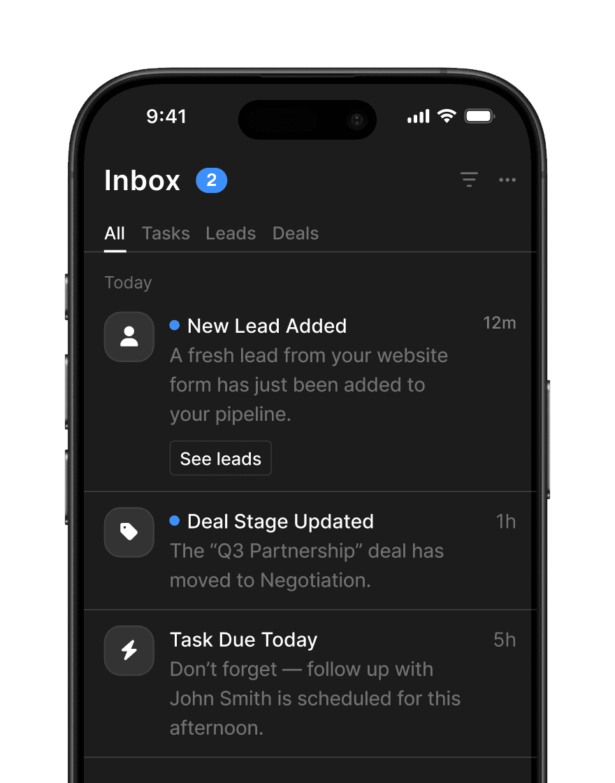 All notifications are collected in one feed. Users see what’s new and what needs action.