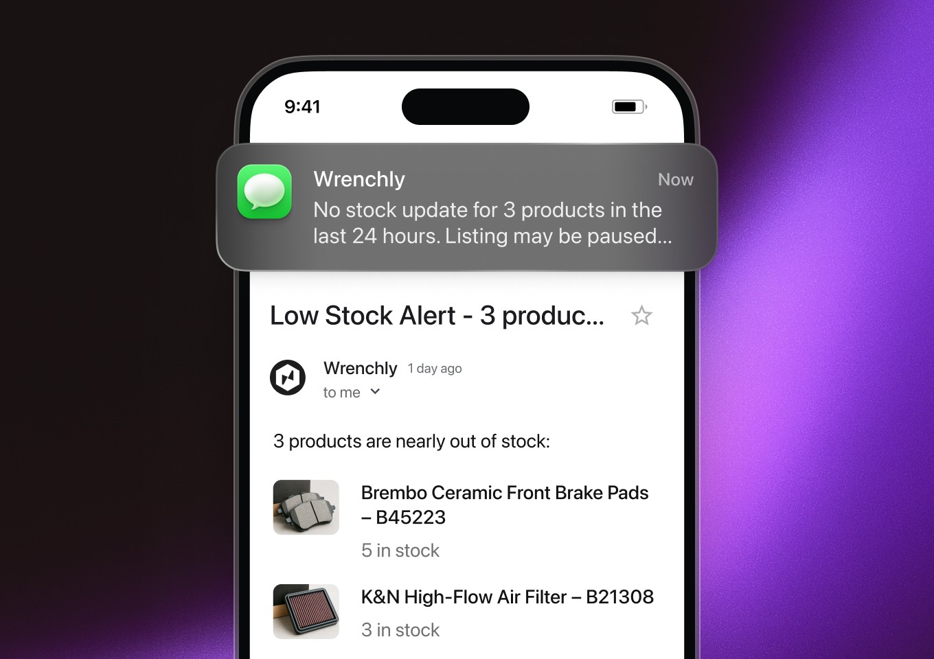 Help sellers avoid missed opportunities by sending alerts before inventory runs out or schedules fall through.