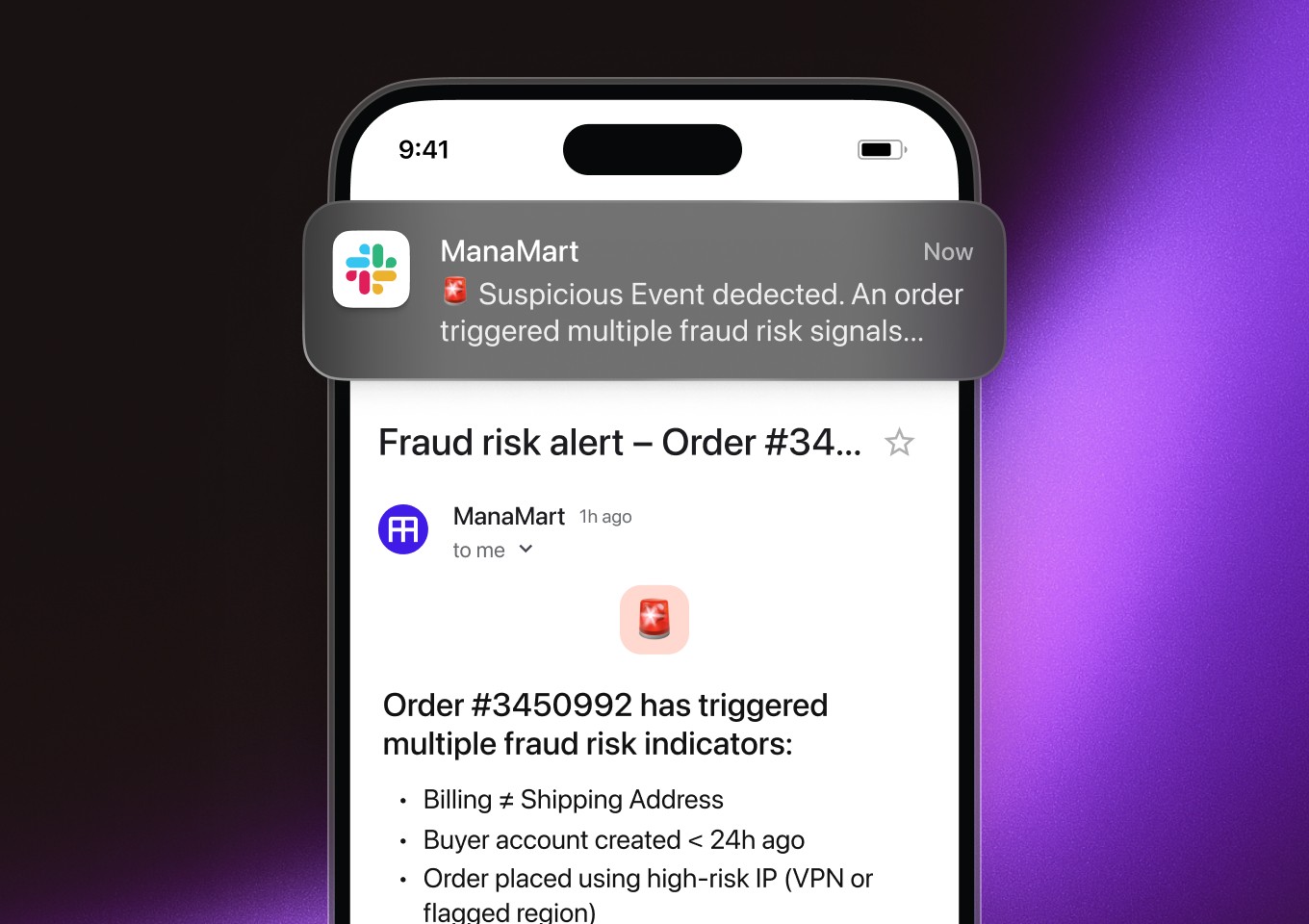 Notify ops instantly via Slack when orders trigger fraud rules