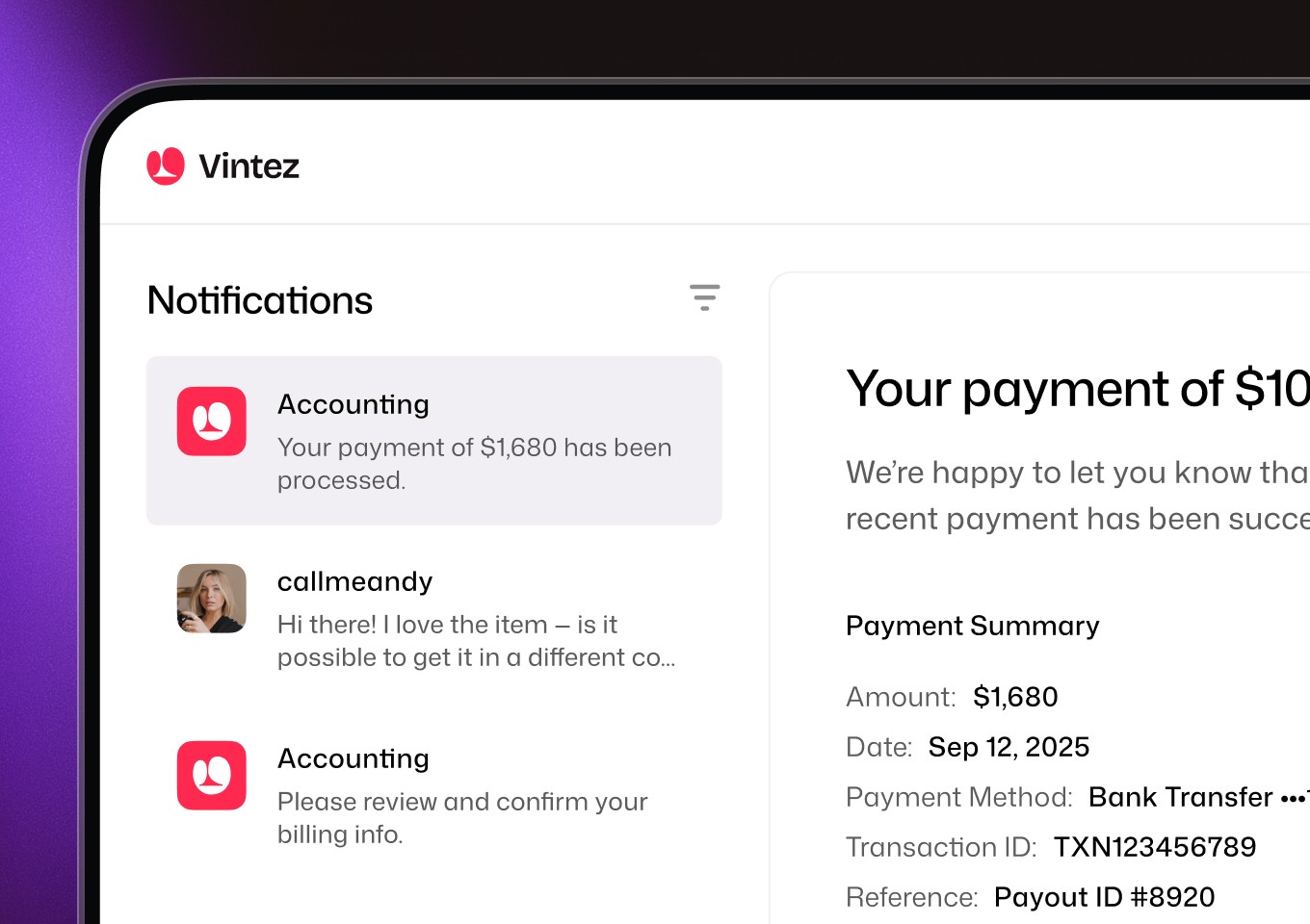 Send payout updates via email or Slack the moment funds move